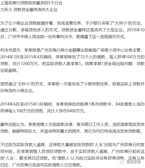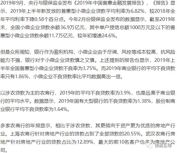 多家银行接连因虚报小微企业贷款数据被罚 到底还有多少水分?为了让小微企业贷款数据好看,完成监管任务,不少银行采取了“大拆小”的方法,通过分散、多笔贷给多人的方式,贷款资金最终还是流向了大型企业。 近日北京农村商业银行因为错报小微贷款报表数据等原因,被北京银保监局罚款330万元。无独有偶,江西银保监局也接连对南昌农商行、江西新建农商行、江西赣昌农商行、江西湾里农商行、江西安义农商行等5家银行虚报小微企业贷款数据行为进行了处罚。